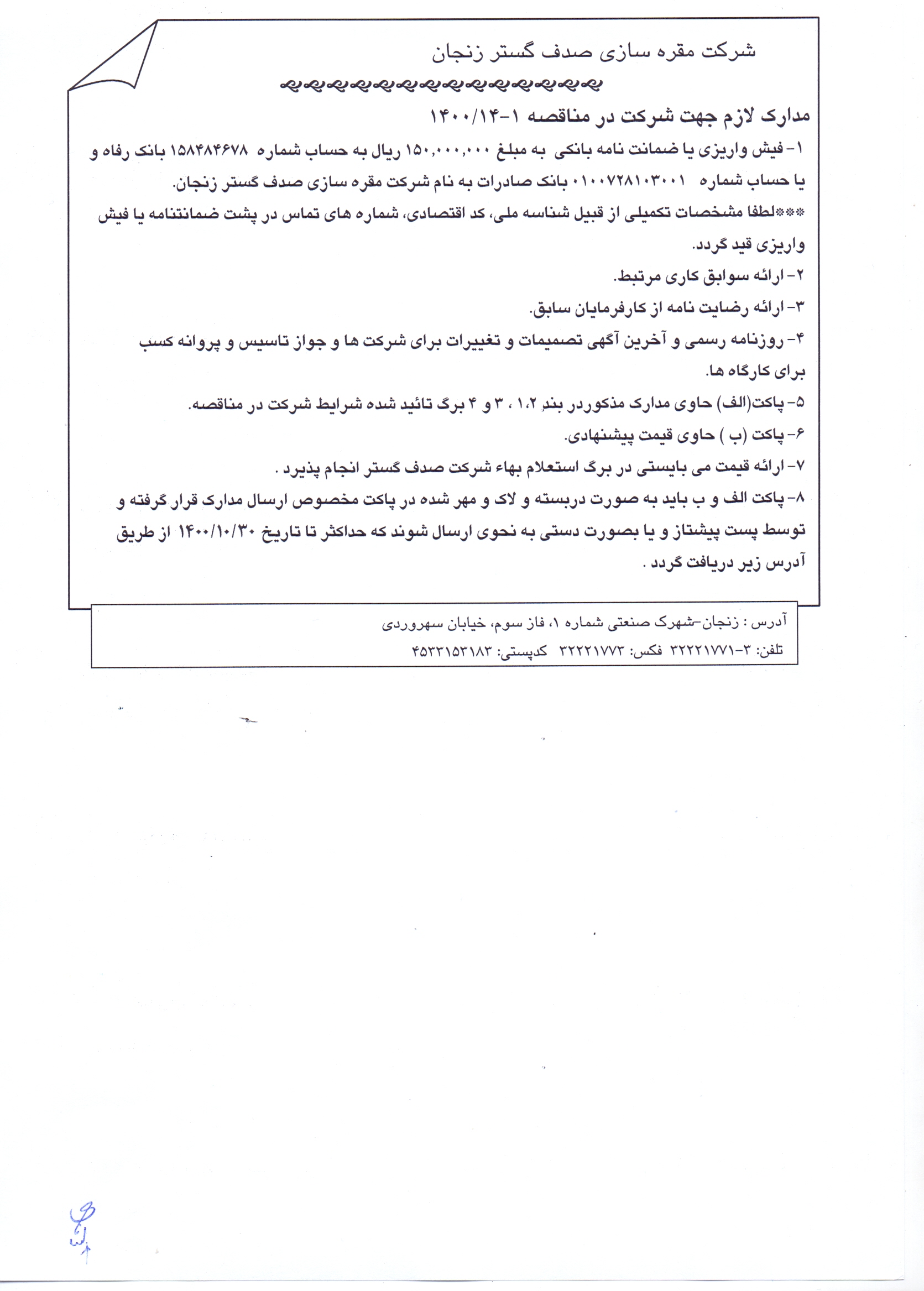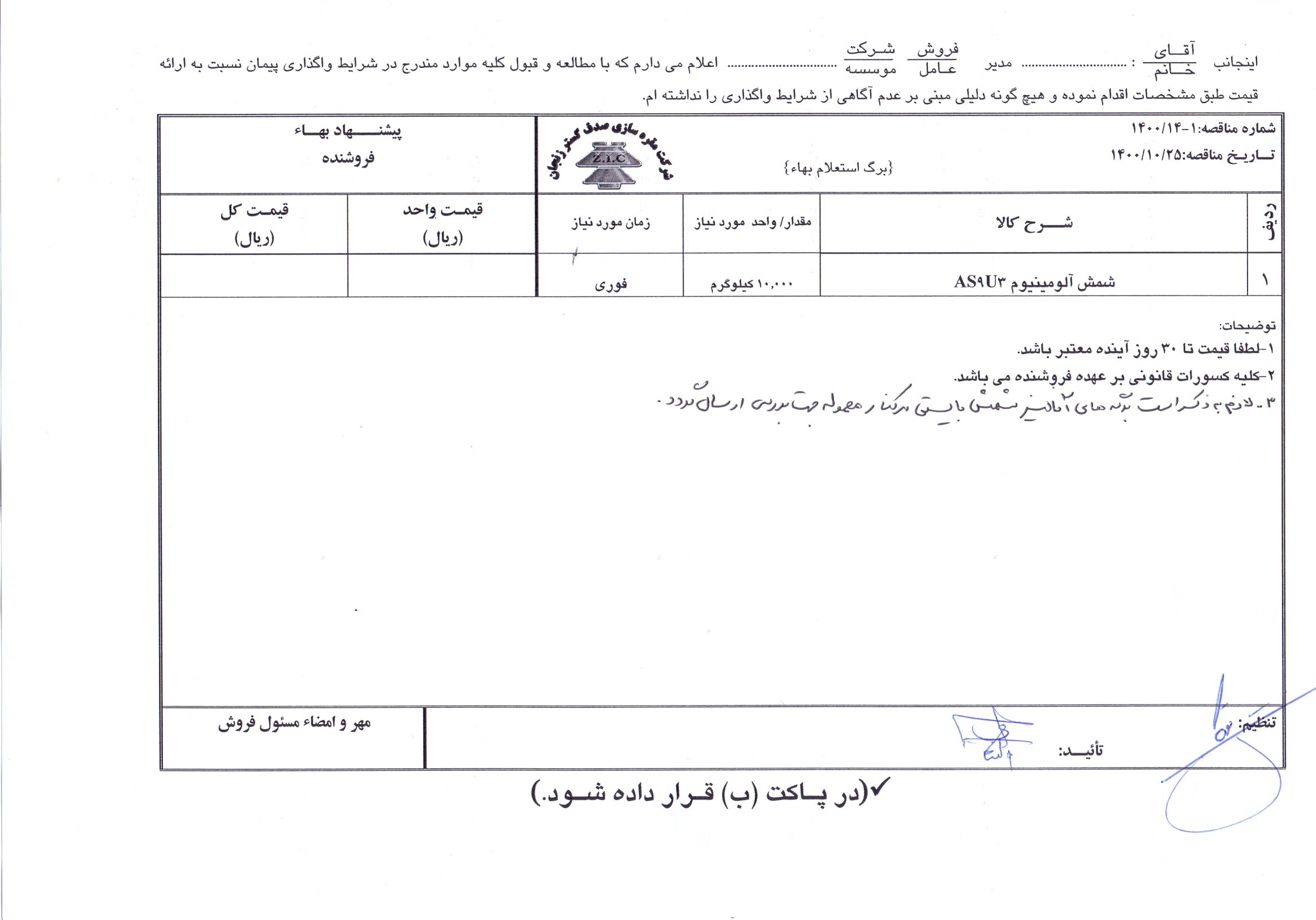 مناقصه خرید 10 تن شمس آلومینیوم / شرکت مقره سازی صدف گستر